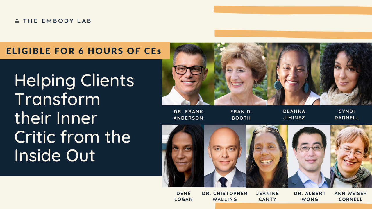 Essential training for any practitioner ready to help clients transform their inner critic from the inside out—through somatic awareness, nervous system regulation, compassionate dialogue, and deep relational repair.